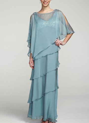 Multi Tiered Long Caplet Chiffon Dress - David's Bridal