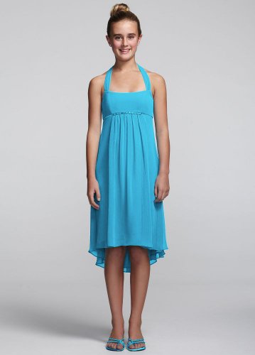 This chic and youthful chiffon dress is the perfect choice for your junior bridesmaid! Tie back halter neckline features sparkling and flattering beaded empire waist. Chiffon high low hemline creates movement and dimension. This style features an adjustable fit for added flexibility and comfort with fewer alterations. Fully lined. Back zip. Imported polyester. Dry clean., Bridesmaid & Bridal Party Dresses