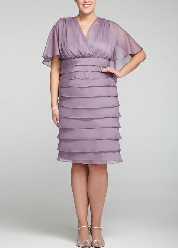 David's Bridal Short Caplet Yoryu Dress with Tiered Skirt Style LRB10W, Lavender, 16W