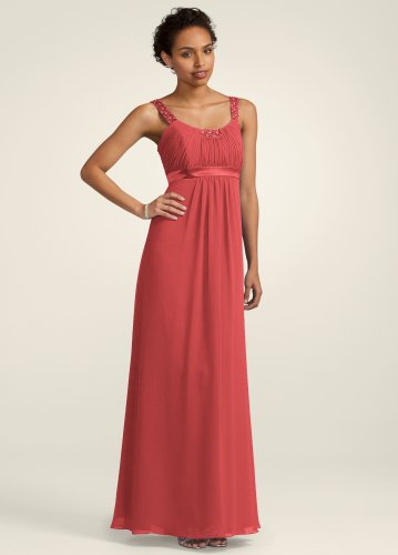 $69.99 David's Bridal Chiffon Dress with Beaded Neckline and Straps ... $69.99 David's Bridal Chiffon Dress with Beaded Neckline and Straps Style F14006, Guava, 18