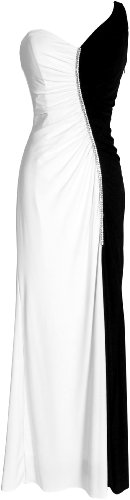 Amazon.com: One Shoulder Stretch Black & White Evening Gown Prom ...