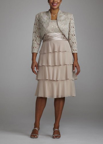 Color: Champagne Customers Who Viewed This Item Also Viewed Plus Size Two Piece Shimmer ... David's Bridal 3/4 Sleeve Jacket Dress with Tiered Skirt Style ...
