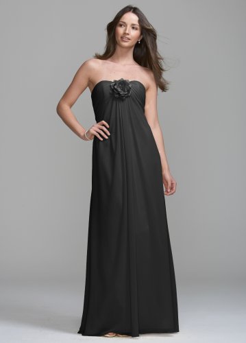 David's Bridal - Long Chiffon Dress with Removable Flower Detail ...