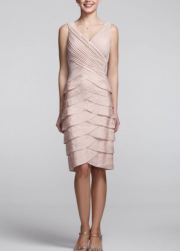 Sleeveless Ruched Bodice Dress with Shutter Skirt - David's Bridal