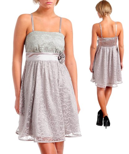 This lacy black spaghetti strap dress is black and silver with floral ... A black satin band at the waist and ... Black/silver; Floral, lace detail; Adjustable ...
