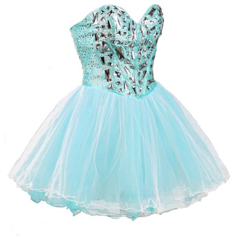 Faironly Zxs1 Mini Short Crystal Prom Cocktail Dress (M, Turquoise)