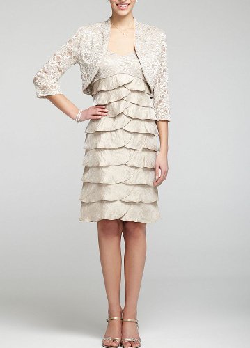 Davids Bridal 3/4 Sleeve Lace Jacket Dress with Tiered Skirt Style 1359, Champagne, 12 Hello visitor, if you want to purchase Davids Bridal 3/4 Sleeve Lace ...