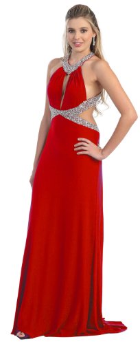 Prom Dress Long Tail Back Cut Out Evening Gown #877 (10, Red)