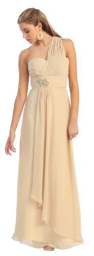 One Shoulder Long Formal Prom Chiffon Dress #955 (4, Champagne)