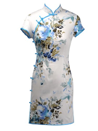Topwedding Silk Mini Cheongsam... ... Topwedding Silk Mini Cheongsam Dress with Flower Pattern and Frog Button, Multi-color, XL.