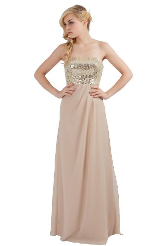 Cinderella Bridal Women's Long Shiny Chiffon Bridesmaid Dresses. ... US2 to US 22 or Custom Made; ... Chiffon. Neckline: Strapless. Color:Champagne Hemline: ...