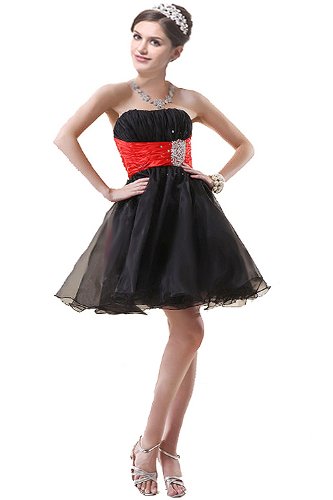 Faironly F-m3 Short Cocktail Prom Dress (S, Black&Red)